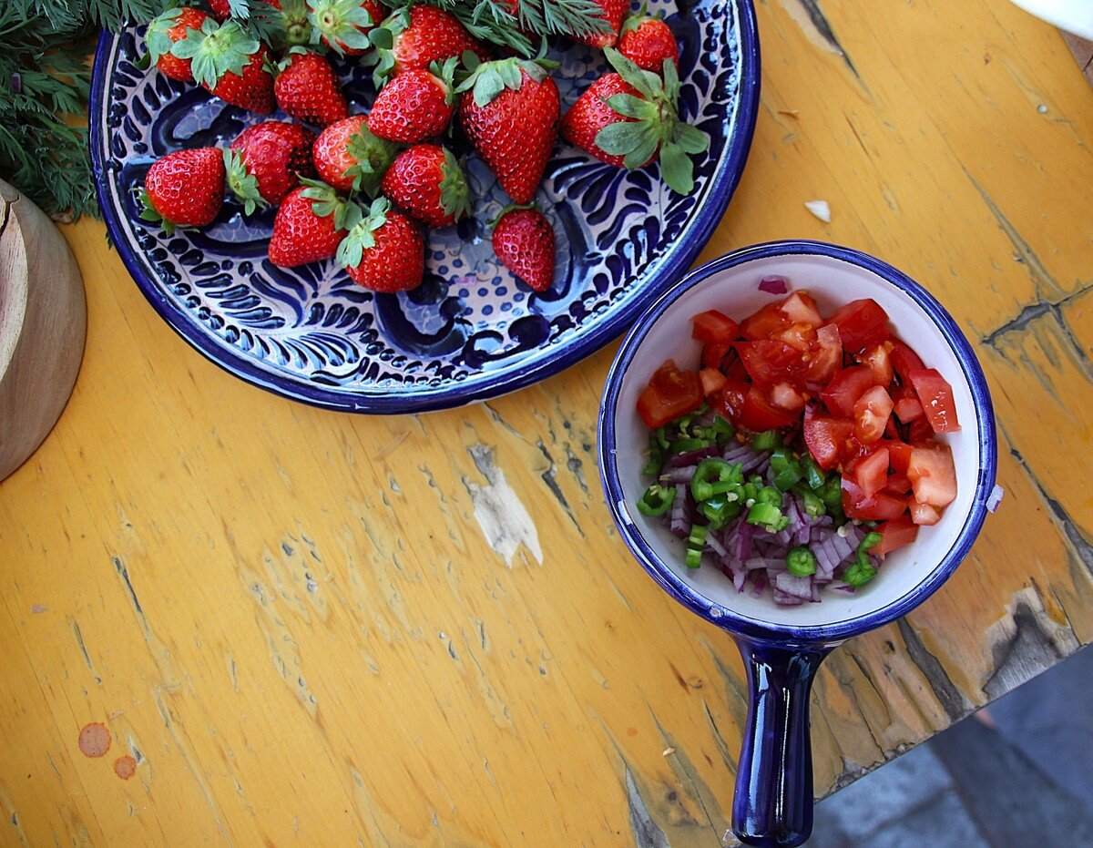 Crema freda de maduixa, fonoll i sal de mar